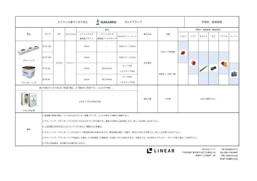 スリランカ産ヤシガラ培土 作物別推奨スペック